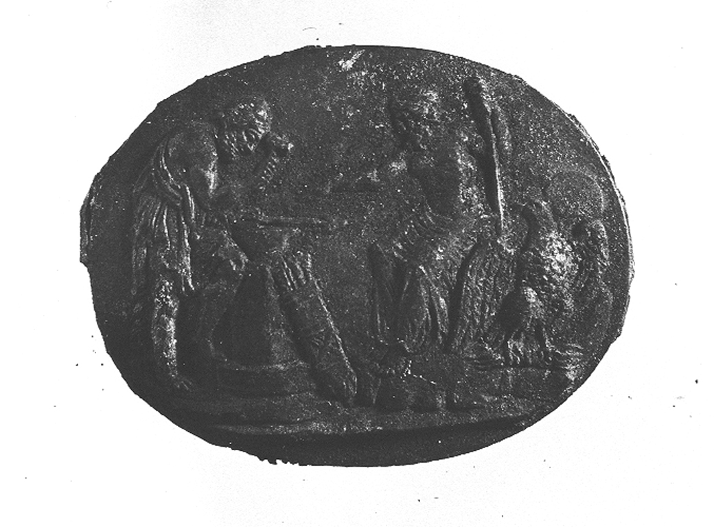 Due medaglioni in bronzo, uno con Giove in trono che ordina a Vulcano i fulmini e l'altra con un guerriero in piedi di fronte a Marte e ad una dea seduti