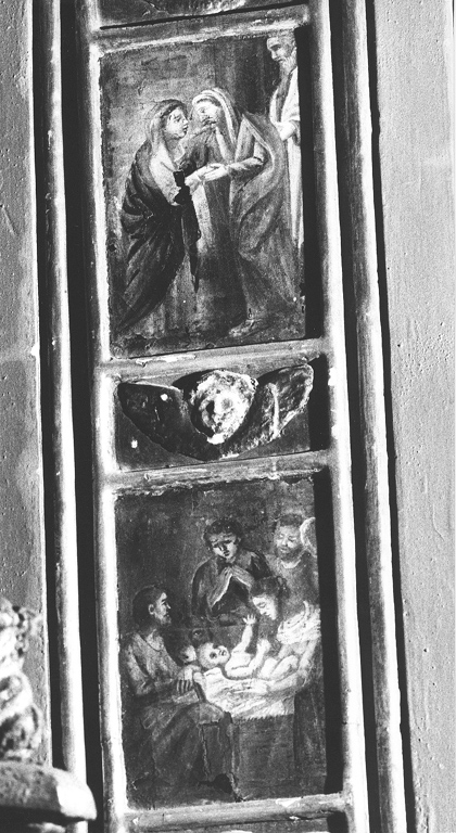 In piedi la Madonna e Sant'Elisabetta. Sulla destra San Zaccaria