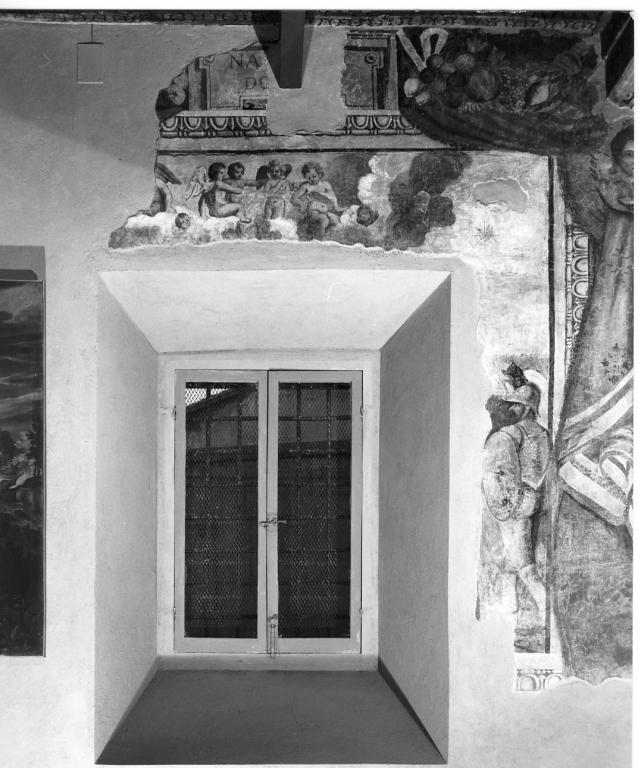 - NOTIZIE STORICO CRITICHE Fino al recente restauro, gli affreschi erano coperti da intonaco e tinteggiature di calce risalenti probabilmente al Settecento, epoca in cui erano state aperte anche le quattro finestre. Il ciclo è databile all'inizio del Seicento, ma riprende un impianto decorativo tipicamente cinquecentesco, con riquadri incorniciati da motivo a ovoli, festoni di frutta e cartigli; manieristico è anche il taglio delle scene. I dipinti sembrano presentare l'intervento di mani diverse, infatti, nonostante il generale modesto livello qualitativo, alcune scene mostrano figure più nobili e spunti desunti dalla cultura pittorica cinquecentesca. Resta comunque impossibile determinare un preciso ambito di produzione, tenendo anche conto dell'estrema frammentarietà di molte scene e dei ritocchi, a volte un pò pesanti, del recente restauro. L'insieme è comunque molto gradevole, soprattutto per la vivacità e il fresco gusto popolareggiante con cui è stata interpretata la grande pittura decorativa del Cinquecento romano