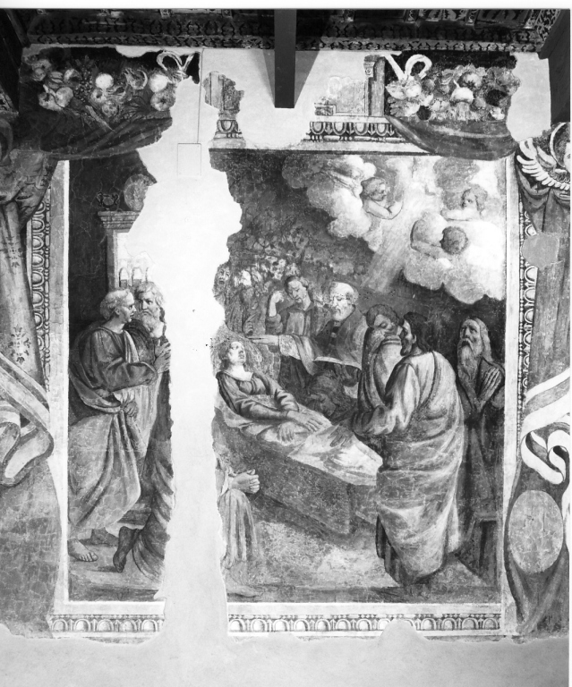 Personaggi: Madonna. Figure: apostoli; angeli. Oggetti: catafalco