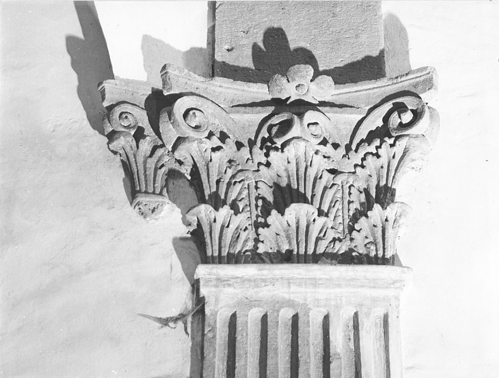 Presentano una decorazione a doppio ordine di foglie, tre più piccole nella parte bassa, tre più grandi nella parte centrale. Nella parte superiore sotto una cornice sagomata con rosetta centrale quattro volute, due convergenti all'interno, due angolari