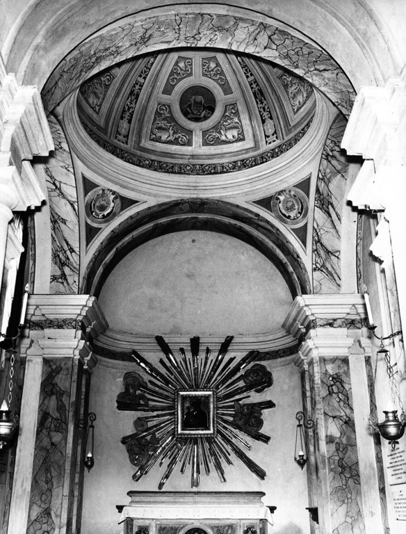 Pilastri e sottarchidipinti a finto marmo, mentre la cupola è affrescata con finte riquadrature architettoniche