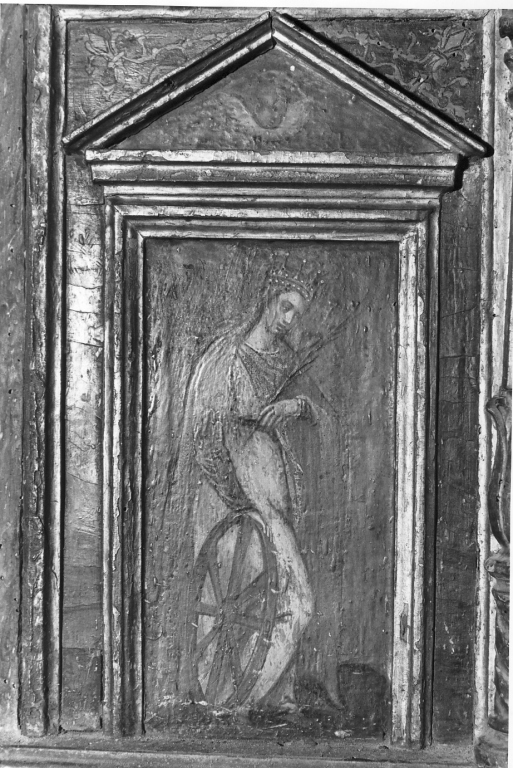 Personaggi: Santa Caterina d'Alessandria. Attributi: (Santa Caterina d'Alessandria) ruota; palma