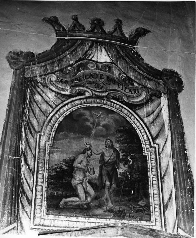 Personaggi: Gesù; San Giovanni Battista. Attributi: (San Giovanni Battista) croce con cartiglio. Simboli: colomba dello Spirito Santo. Fiumi: Giordano