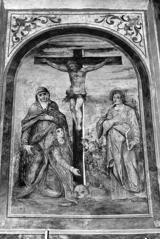Personaggi: Gesù Cristo; Madonna; San Giovanni Evangelista; Santa Maria Maddalena. Oggetti: croce; teschio