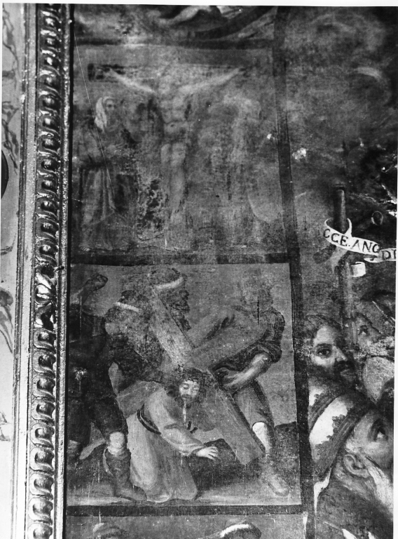 Personaggi: Cristo; Madonna; San Giovanni Evangelista. Oggetti: croce