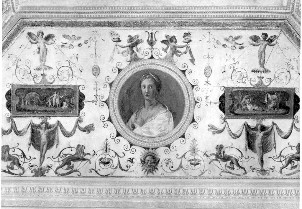 - NOTIZIE STORICO CRITICHE Quetsa decorazione fa parte di un più vasto ciclo pittorico che riguarda ancle la seconda e terza stanza. Le pitture, ricoperte nel 1838 in occasione della vendita della Villa dai Borghese a Maddalena Sofia Barat, furono riscoperte durante i lavori di restauro compiuti nel 1973-1975