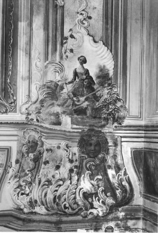 Figure: menestrelli; dame. Decorazioni: grottesche; arabeschi vegetali