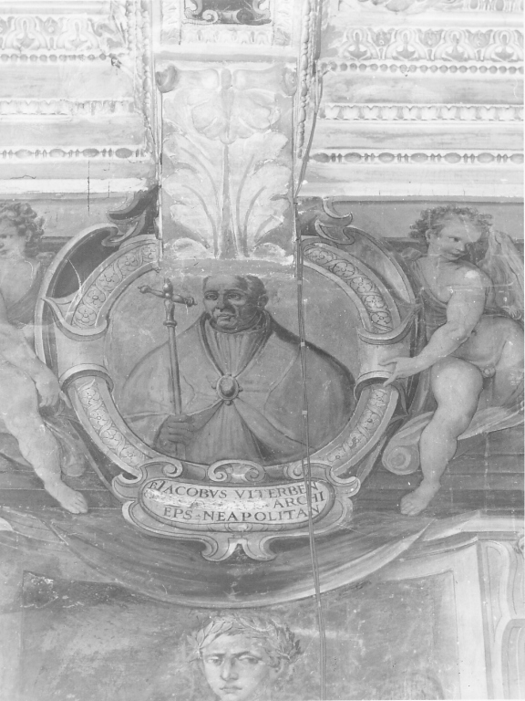 - ISCRIZIONI in basso - B IACOBUS VITERBEN/ ... ... ARCHI/ EPS NEAPOLITAM - lettere capitali - a pennello - latino