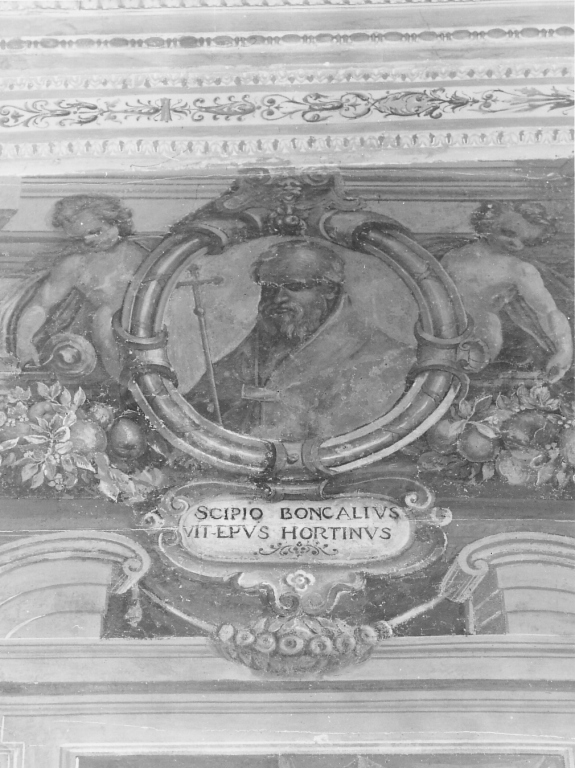 - ISCRIZIONI in basso - SCIPIO BONCALIUS/ VIT EPUS HORTINUS - lettere capitali - a pennello - latino