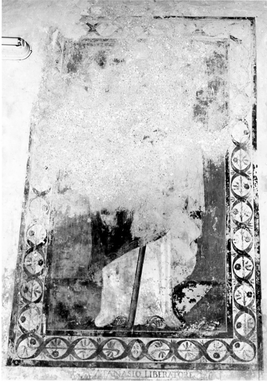- NOTIZIE STORICO CRITICHE L'intera chiesa doveva essere decorata con affreschi oggi coperti dall'intonaco sotto il quale si notano infatti delle trasparenze di colore. Il Piccirilli (Monumenti dell'Italia meridionale..., 1911, p. 180) ricordagli affreschi della chiesa attribuendoli a un unico artista sconosciuto. Egli cita anche l'affresco di S. Atanasio