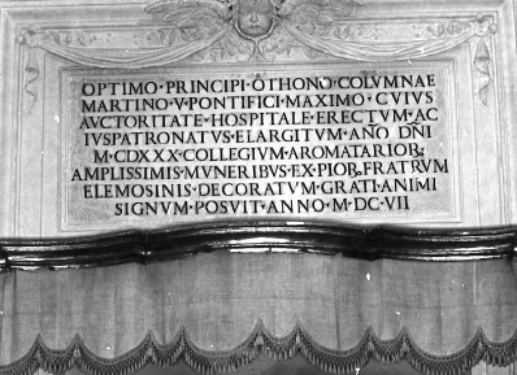 - NOTIZIE STORICO CRITICHE L'iscrizione ricorda il fondatore della chiesa, papa Martino V Colonna (1417-1431) che con la bolla dell' 8 marzo 1529 concesse la chiesa, ex collegiata affidata a un capitolo di canonici appartenente al cardinale vescovo suburbicario di Sabina , e i locali annessi al collegio degli Speziali di Roma. Il Collegio innalzò le prime cappelle della chiesa tra le colonne dell' antico tempio di Antonino e Faustina, ma nel 1536 in seguito all' ingresso solenne in Roma di Carlo V, esse furono distrutte su ordine del magistrato romano che voleva liberare "dalle brutture di bassi tempi" le vestigia classiche della città. Nel 1602 esse furono riedificate ex novo con tutta la chiesa nell' aspetto attuale