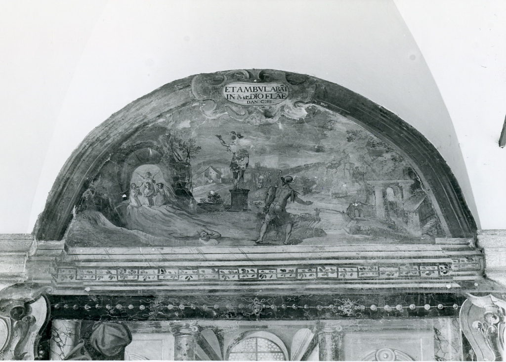 Personaggi: tre giovanetti; Nabucosodor; Soggetti sacri: angelo; Figure maschili; Oggetti: fornace; statua d'oro; Paesaggi