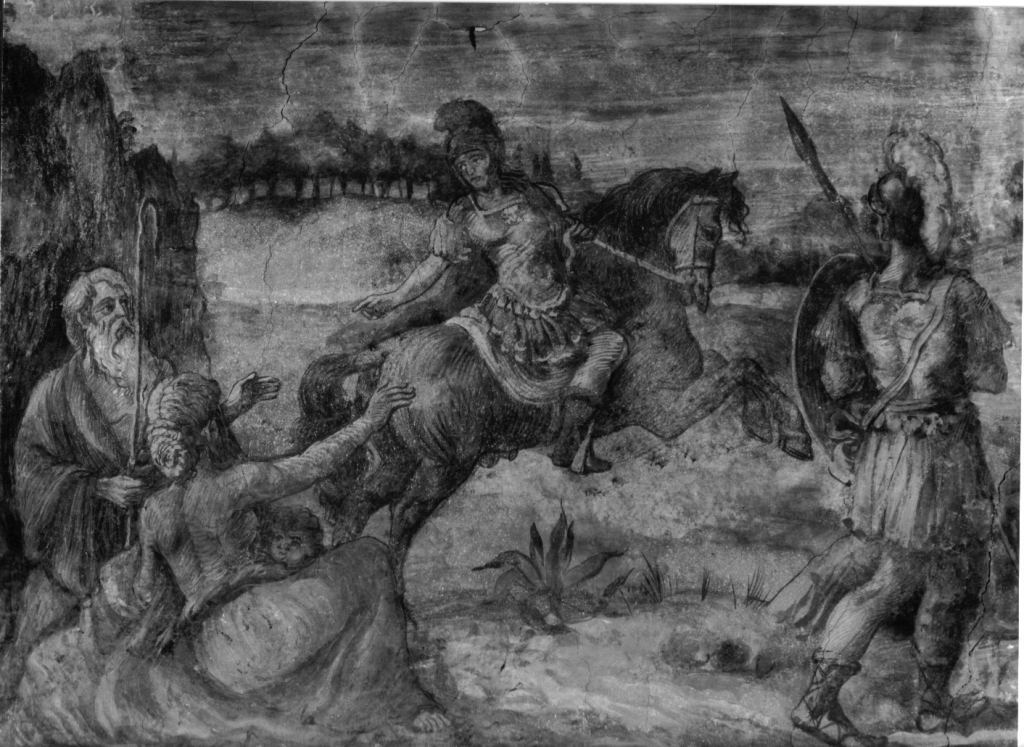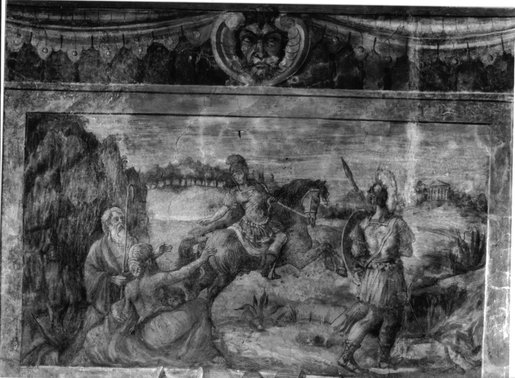 Figure maschili: uomo anziano; bambino. Figure femminili: donna. Guerrieri: soldati romani. Animali: cavallo. Costruzioni: tempio