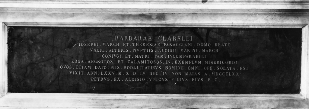 - ISCRIZIONI obelisco - D. O. M./ TE MISER EXTINTA SOLOR MEA DANA/ SEPULCRO HOC/ QUOD FAUSTINA TUUM CORPUS/ ET OSSA TEGIT/ PULCHRA NIMIS NEC CASTA MINUS/ MEDIOQ. IUVENTE/ FLORE CADIS LINQUENS MI GEMITUM/ ET LACRIMAS - lettere capitali - a solchi -