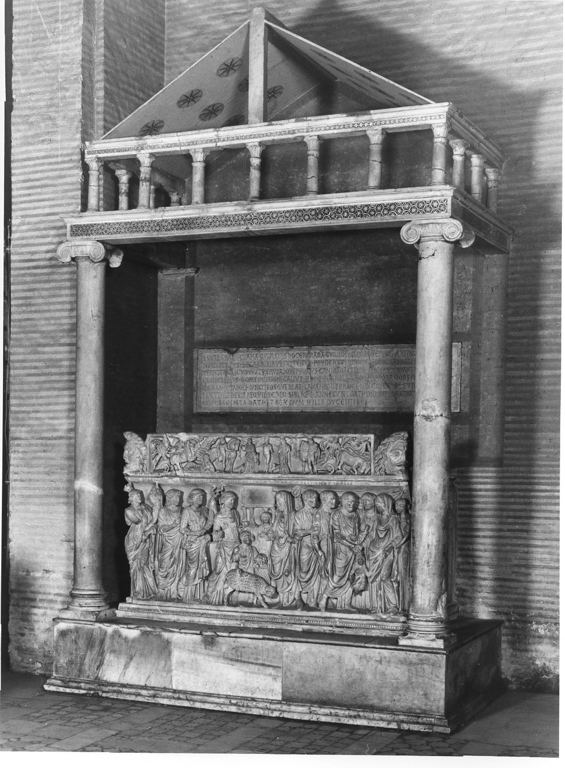 Alto baldacchino a tetto poggiante su sottili colonne dai capitelli ionici
