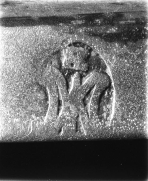 Secchiello per acqua benedetta: base circolare; coppa specchiature; collarino con specchiature e rosa al centro; manico a volute. Aspersorio