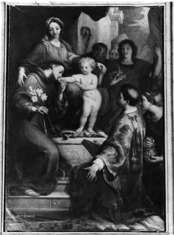 Personaggi: Madonna; Gesù Bambino; Sant'Antonio; San Venanzio; Santa Prassede; San Domenico. Attributi: (Madonna) libro; (Sant'Antonio) giglio; (San Venanzio) libro; (Santa Prassede) vaso