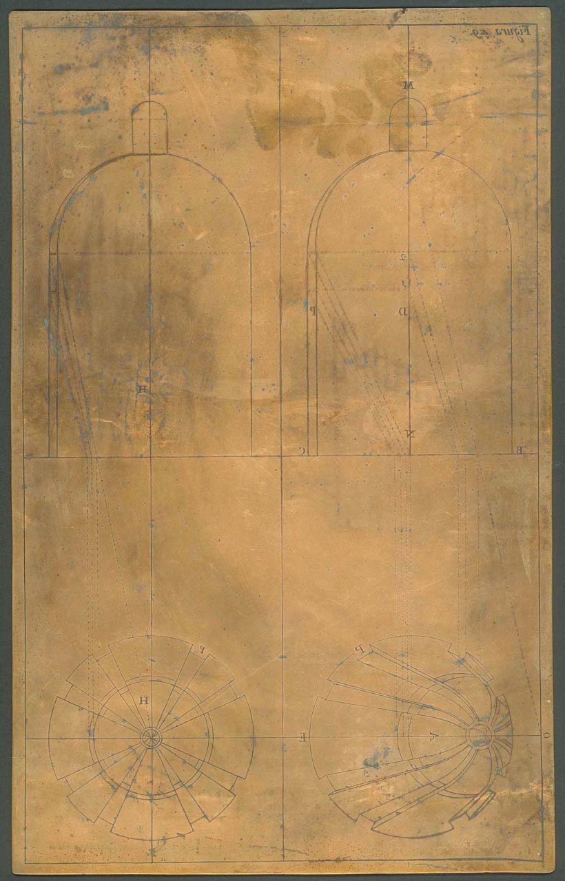 Istruzione, per fare le Cupole di sotto in sù. pianta, sezione e proiezione prospettica di cupola