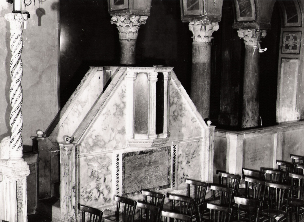 - NOTIZIE STORICO CRITICHE L'ambone dell'Epistola, insieme con quello speculare del Vangelo, può essere ascritto agli interventi documentati sotto il pontificato di Callisto II (1118-1123) e del suo camerario Alfano. Anche in questo caso la datazione sembra essere confermata dal confronto dei pilastrini con quelli presenti sulla fronte della tomba di Alfano. Questa identità di motivi decorativi e di stile ha fatto ipotizzare una medesima maestranza per i tre monumenti (Giovenale, 1927, pp. 27-28)