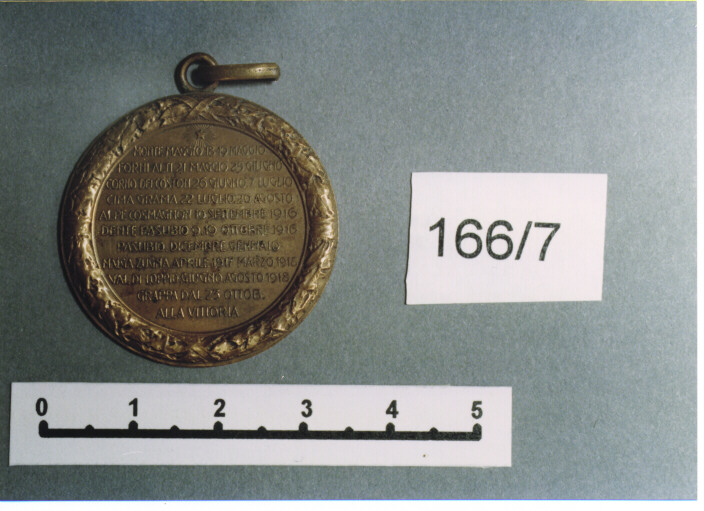 - ISCRIZIONI D/ BATTAGLIONE/M.TE SUELLO/CONVEGNO DI SALO'/9 OTTOBRE 1921/ 5.O REGG.. R/ MONTE MAGGIO 18. 19 MAGGIO/ FORNI ALTI 21 MAGGIO 25 GIUGNO. -