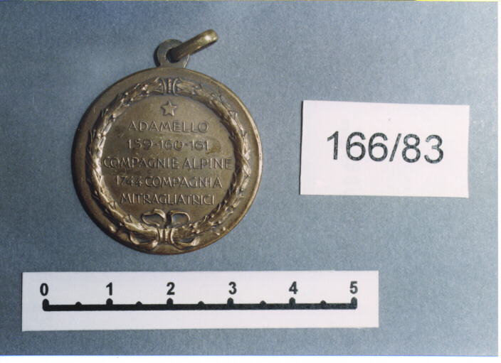 - ISCRIZIONI D/ BATTAGLIONE ALPINI MONTE MANDRONE. 1916-1920. R/ ADAMELLO/ 159-160-161/ COMPAGNIE ALPINE/ 1744 COMPAGNIA/ MITRAGLIATRI. -