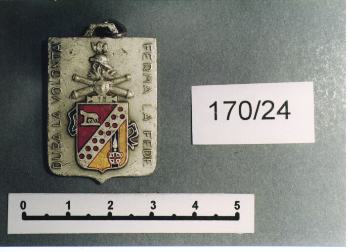 - ISCRIZIONI D/ 13.O RGT. ARTIGL./ DA CAMPAGNA R/ DURA LA VOLONTA'/ FERMA LA FEDE -