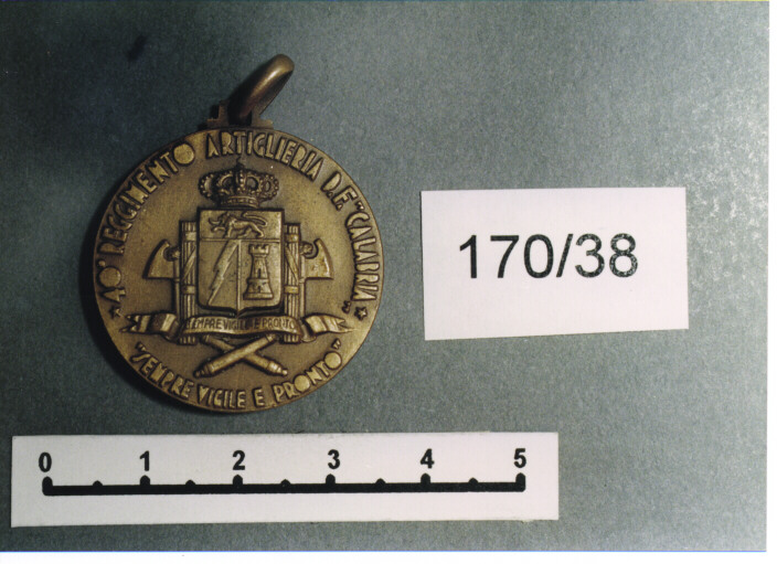- ISCRIZIONI D/ -SANTA BARBARA PROTEGGETEMI- R/ 40.O REGGIMENTO ARTIGLIERIA D. F. "CALABRIA" "SEMPRE VIGILE E PRONTO" -