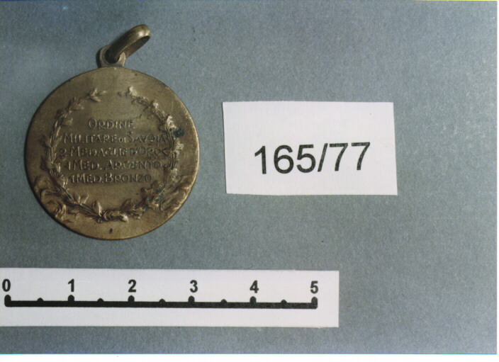 - ISCRIZIONI D/ 5.O/ FANTERIA/ BRIGATA AOSTA LA VELA R/ ORDINE/ MILITARE DI SAVOIA/ 2 MEDAGLIE D'ORO/ 1 MED. ARGENTO/ 1 MED. B -