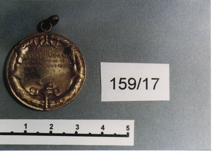 - ISCRIZIONI R/ XIII.O/ CORPO D'ARMATA/ CARSO 1915-16-17/ TAGLIAMENTO-PIAVE 1917-18 -