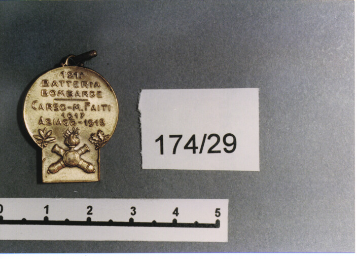 - ISCRIZIONI R/ 121.A/ BATTERIA/ BOMBARDE/ CARSO-M. FAITI/ 1917/ ASIAGO-1918 -