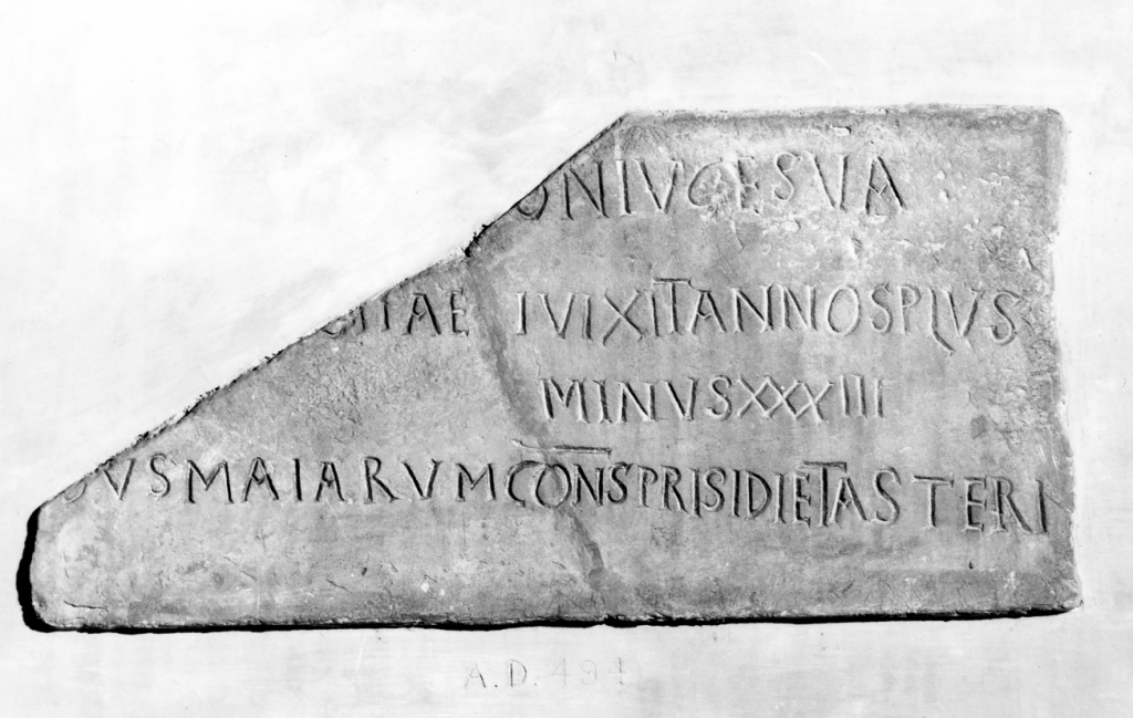 - ISCRIZIONI sulla lastra - Cfr. la fotografia allegata - lettere capitali - a solchi -