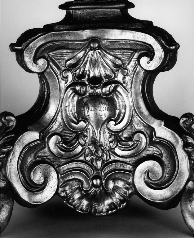 - ISCRIZIONI nello scudo al centro della base - VNIVERSITA / DE TINTORI / A 1748 - lettere capitali -