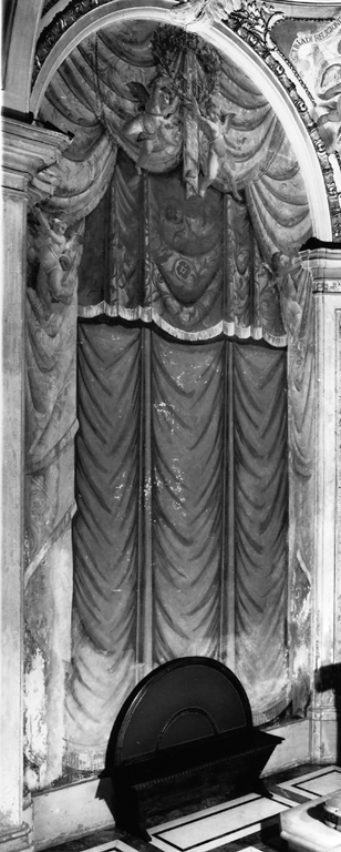 pitture rappresentanti tendaggi e angioletti reggenti corone di foglie