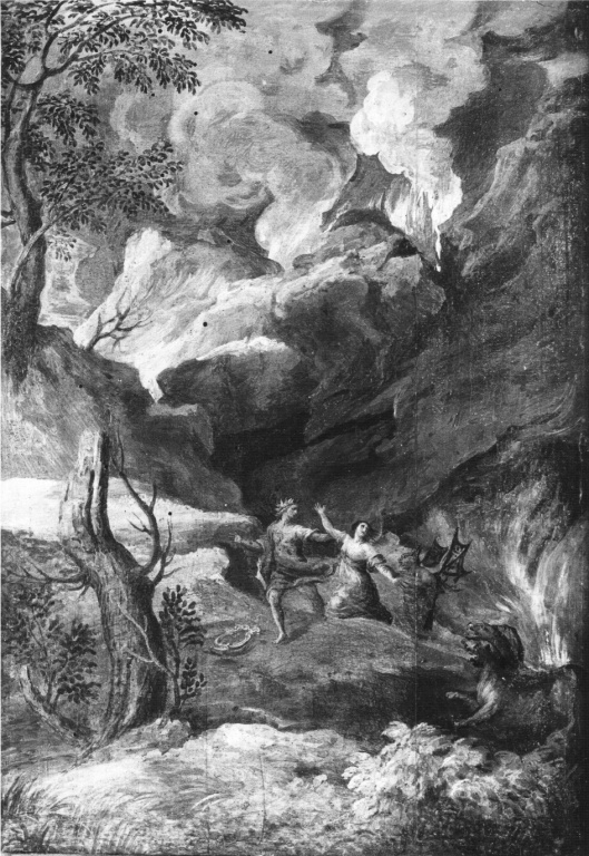 Soggetti profani: scena mitologica: Orfeo; Euridice. Strumenti musicali: lira. Animali mitologici