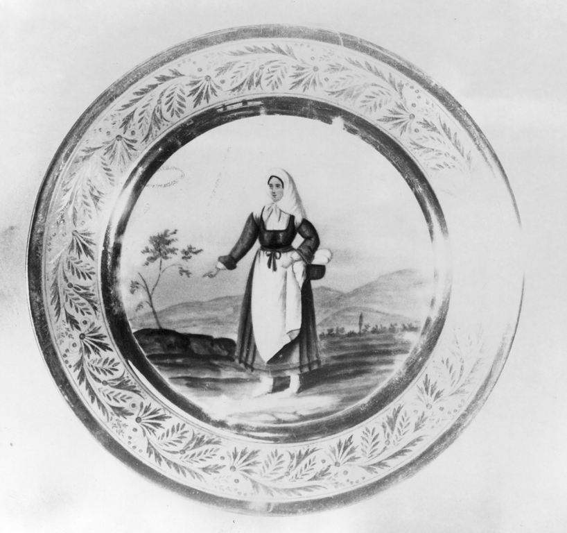 - NOTIZIE STORICO CRITICHE la serie di piatti fu realizzata su modello del servizio delle "Vestiture del Regno", eseguito dal 1784 per volere di Ferdinando IV. Le raffigurazioni dei costumi indossati dalle genti del Regno delle Due Sicilie derivano da una serie di disegni di Giacomo Milani, incisa su rame da Raffaele Aloja tra il 1794 e il 1799. Alcuni pezzi sono firmati da Francesco Nardone, decoratore attivo tra il 1826 e il 1860 nell'atelier di Raffaele Giovine a Napoli
