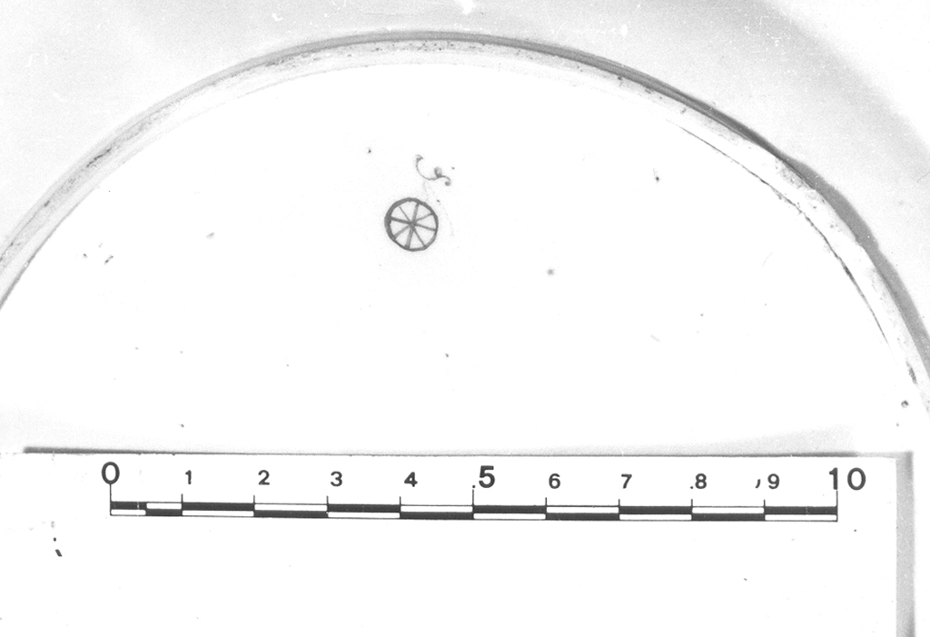 - STEMMI sotto la base - produzione - Marchio - manifattura di Hoechst - ruota in rosso scuro con la lettera G