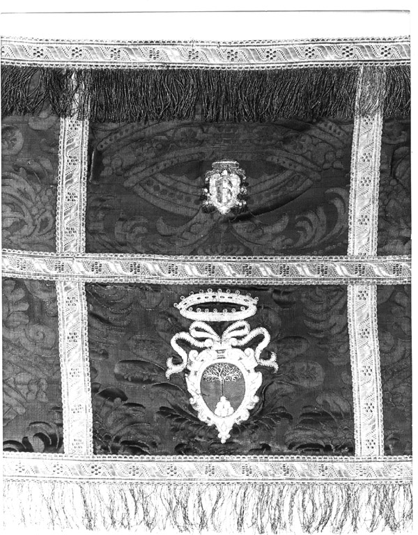 - NOTIZIE STORICO CRITICHE Il pannello e i galloni sono della fine del XIX secolo. Tra i vari stemmi vi sono quellao cardinalizio Colonna e quello Della Rovere