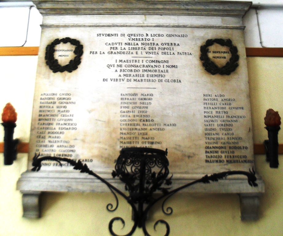 - NOTIZIE STORICO CRITICHE Gli ultimi cinque nomi incisi sono stati aggiunti. L'ingresso della scuola è anche sulla piazza dell'Esquilino, 31. Cfr. "La Memoria perduta, I monumenti ai caduti della Grande Guerra a Roma e nel Lazio", a cura di Vittorio Vidotto, Bruno Tobia, Catherina Brice- Argos 1998, p. 97
