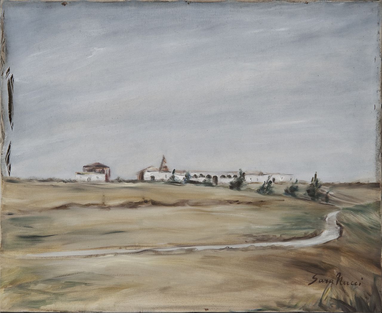 - NOTIZIE STORICO CRITICHE Il paesaggio è delineato con pennellate asciutte e sfumate che conferiscono alla scena un'atmosfera assorta e malinconica. Non è stato possibile ricostruire la personalità di Sara Nucci, di cui la Camera dei Deputati, possiede nove dipinti, alcuni dei quali raffiguranti paesaggi pugliesi