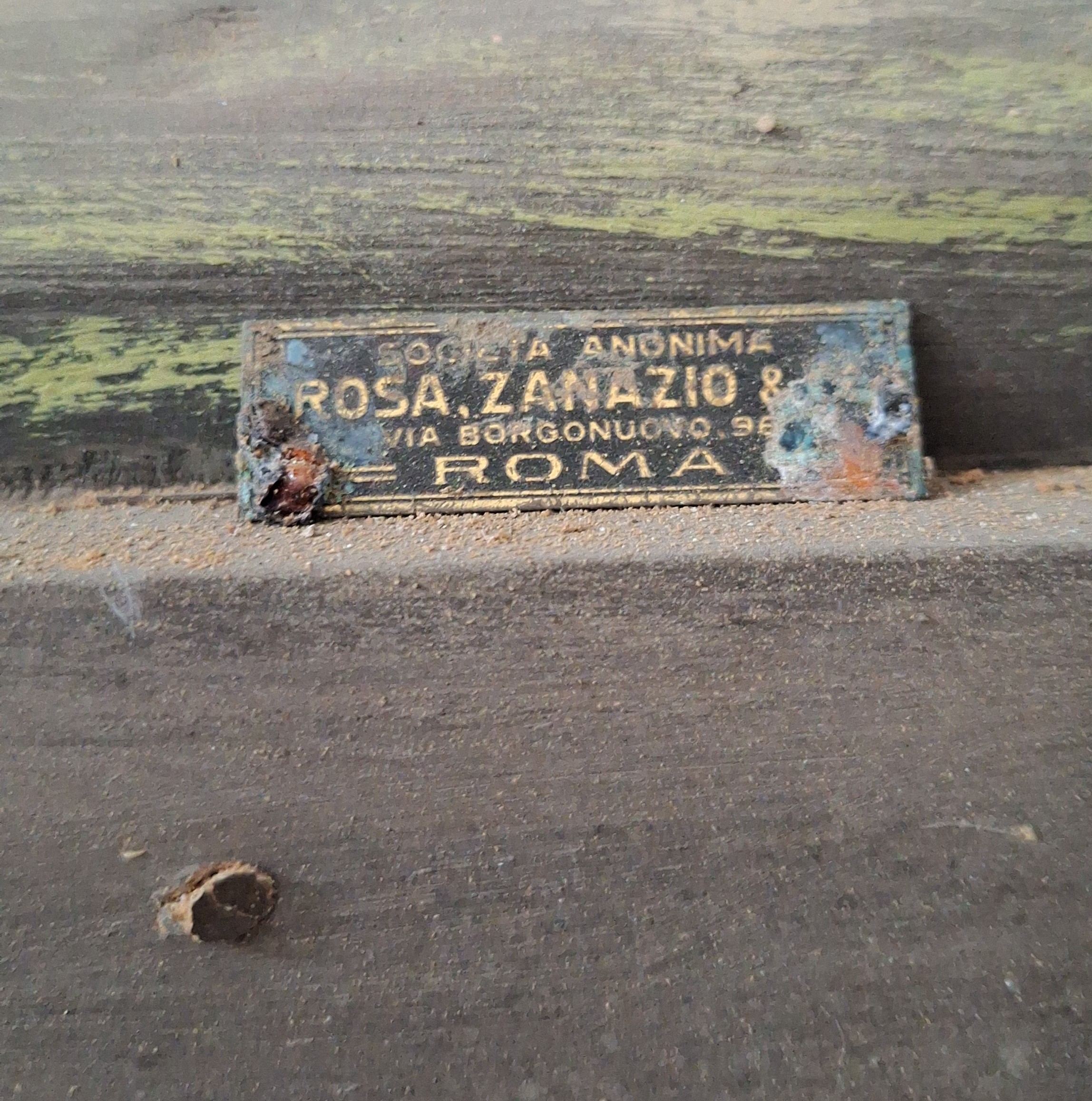 - ISCRIZIONI sulla targhetta appoggiata soprta la base - SOCIETÀ ANONIMA/ ROSA, ZANAZIO & C./ VIA BORGONUOVO 9[6]/ ROMA - maiuscolo/ numeri arabi -
