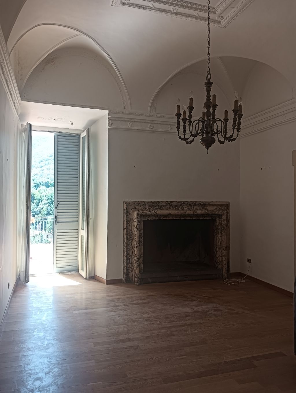 - NOTIZIE STORICO CRITICHE L'ambiente è caratterizzato da una interessante partizione della volta e da una cornice in stucco sulla quale si ripetono, alternati a rosette, l'aquila, emblema dei Conti e i gigli farnesiani, allusivi a Violante Farnese consorte del duca Torquato I Conti, committente delle decorazioni dell’appartamento al pianterreno del palazzo baronale (cfr. schede 1200066607-0, 1200066617-0, 1200066622)