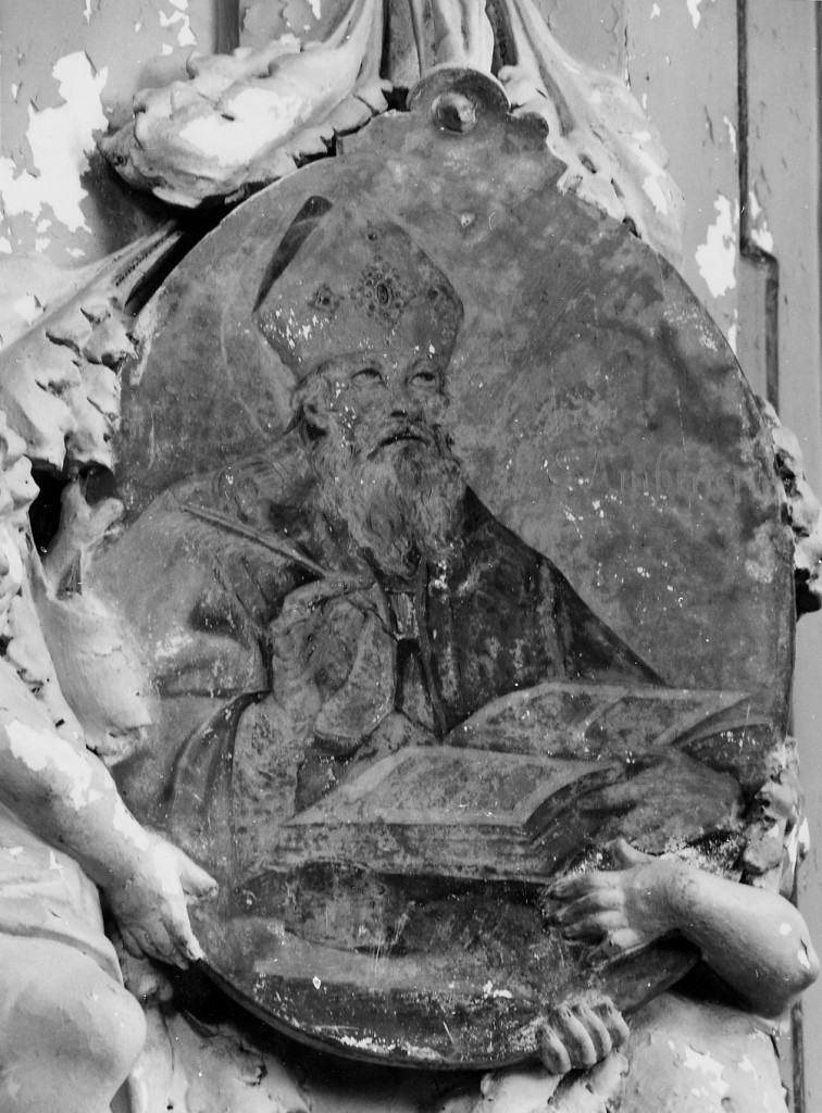 - ISCRIZIONI In alto a destra - S. AMBROSIUS - corsivo - a pennello - latino