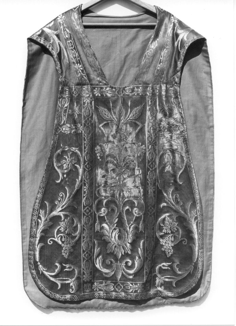 - NOTIZIE STORICO CRITICHE Il tessuto, realizzato appositamente per uso liturgico, va inserito nella produzione seriale del periodo proposto e con buona probabilità a fattura tedesca. Nell'ultimo quarto dell'Ottocento, l'industria tessile tedesca aveva raggiunto un grado di meccanizzazione il più avanzato d'Europa