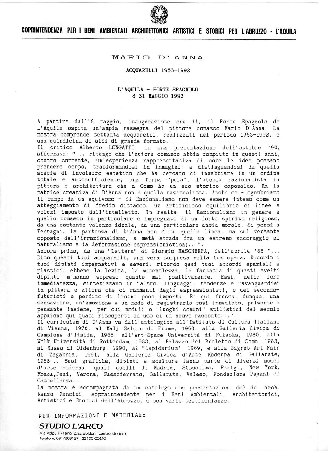 - ENTE COMPETENTE PER LA TUTELA Soprintendenza per i Beni Storici Artistici ed Etnoantropologici dell'Abruzzo