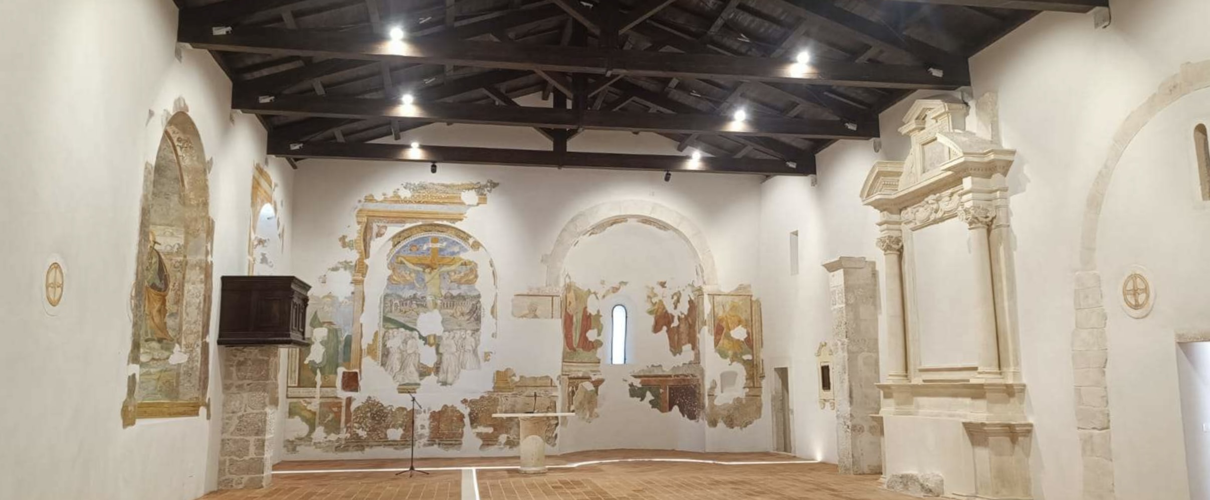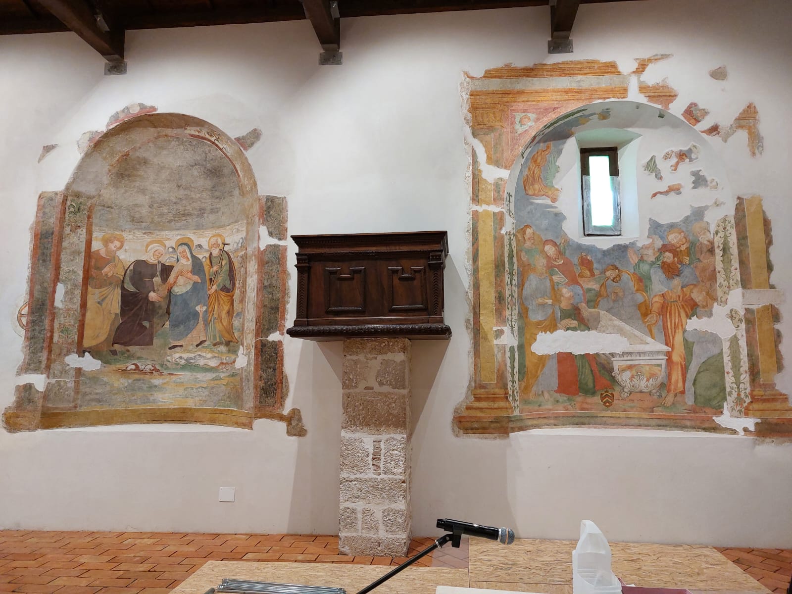 La nicchia, aperta poco oltre il pulpito, lungo il muro perimetrale di sinistra, mostra una ricca decorazione pittorica. Il semicilindro ospita al suo interno la scena con l'Assunzione della Vergine, alterata, al centro, dall'apertura di una monofora. Al di sotto dell'apertura si dispone il sarcofago circondato dalle figure degli Apostoli. In alto, invece, si intravedono tracce di angeli ritratti in volo ad ali spiegate. L'intradosso della nicchia è decorata da un ornato vegetale, mentre la cornice esterna, anch'essa dipinta, riproduce un elegante tabernacolo marmoreo