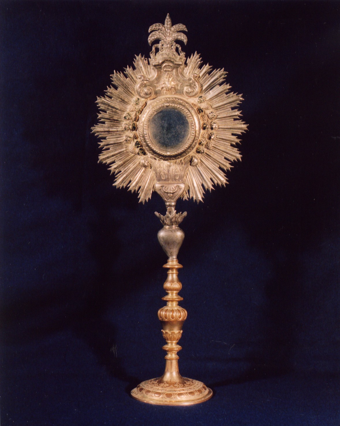 - NOTIZIE STORICO CRITICHE Il ricettacolo è opera dell'argentiere napoletano Luigi Forte (cfr. Catello E. e C, 1996). L'argentiere Forte fu attivo dal 1834 e pertanto il manufatto è databile dopo tale data. La tipologia del ricettacolo è quella comune a molti ostensori settecenteschi, l'autore però non appesantisce la raggiera con un'eccessiva ornamentazione, preferendo una linea più sobria secondo i canoni del gusto neoclassico