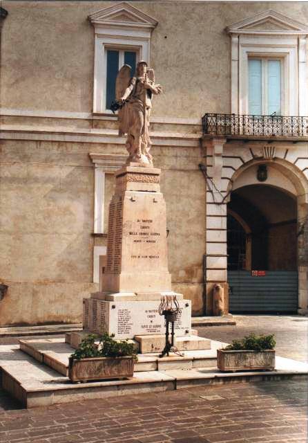 - NOTIZIE STORICO CRITICHE Inizialmente, il monumento era collocato in piazza Lucio Valerio Pudente, di fronte a palazzo d’Avalos. L’opera fu inaugurata il 24 maggio del 1922 e fu fortemente voluta dall’allora sindaco, Florindo Ritucci Chinni, e dal poeta Romualdo Pàntini. Il comune, infatti, attraverso due delibere del Consiglio, stanziò 2500 lire da destinare al comitato pro monumento, e approvò la perizia tecnica dell’ing. D’Aloisio per la sistemazione della suddetta piazza. Per quanto riguarda l’autore dell’opera, “La Tribuna” del 28 maggio 1922, in un articolo dedicato all’inaugurazione, cita un certo prof. Remedi. In un altro contributo, il prof. Luigi Murolo specifica che si tratta dello scultore carrarese Enrico Remedi. Incrociando i dati a disposizione, è emerso il nome dell’architetto Enrico Remedi, docente, durante gli anni Trenta, di Proiezioni prospettiva e teoria delle ombre, presso l’Accademia di Belle Arti di Carrara. Remedi, inoltre, fu autore, insieme all’illustre Fernando Biscaccianti, del progetto di restauro dell’Accademia stessa, che comprendeva anche la parte relativa alla decorazione scultorea. Le informazioni inserite nella presente scheda, tratte dai registri dell’Accademia, sono state reperite grazie alla prof.ssa Anna Laghi e alla direttrice Lucilla Meloni. Non è chiaro come da Carrara Remedi sia arrivato in Abruzzo. A fare da ponte tra la realtà toscana e quella abruzzese, potrebbe essere stato l’intellettuale vastese Romualdo Pàntini, indicato dalle fonti quale ideatore dell’impostazione concettuale del monumento ai caduti di Vasto. Pàntini, infatti, si era laureato in Lettere a Firenze, dove di fatto si formò, collaborando attivamente alla rivista di ispirazione dannunziana, “Il Marzocco”. Al momento, si tratta di una ipotesi da verificare attraverso ulteriori approfondimenti scientifici. Lo spostamento del monumento nella sede attuale, invece, è avvenuto il 2 giugno del 1996 mentre, nel 2012, ne è stato promosso il restauro, grazie alla campagna fondi promossa dal mensile “Vasto domani”. Per le fonti si veda: Luigi Murolo, “Il restauro del Monumento ai caduti” in “Un’idea di città. Beni culturali, scuola, territorio”, Il Torcoliere, 2013, Vasto (CH), pp. 129-136; Beniamino Fiore (a cura di), “Il Novecento a Vasto”, Cannarsa, 2007; "L'accademia di Belle Arti di Carrara e il suo patrimonio", Lucilla Meloni (a cura di), Postmedia srl, Milano, 2014