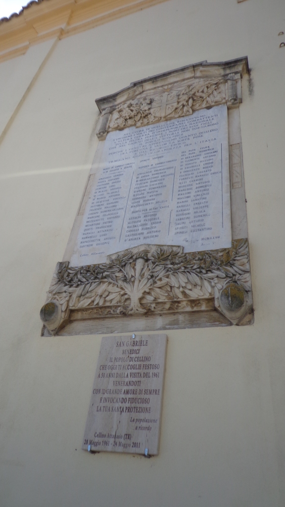 - ISCRIZIONI sulla lapide in marmo - NEL CUORE DI QUELLI CHE RIMANEVANO/ S’INCISERO I VOLTI DEI CONTERRANEI/ COMBATTENTI/ L’ULTIMA GUERRA D’INDIPENDENZA NAZIONALE/ SULLA PIETRA PERENNE I NOMI DEI SUOI FIGLI/ CHE NEL GIUORNO DELLA VITTORIA NON TORNARONO/ IL POPOLO SCOLPISCE/ PERCHÉ I VENTURI APPRENDANO QUANTO DISSIDIO/ TRA FORTUNA E VALOR LA SORTE POSE/ E DAL RICORDO EROICO/ TRAGGANO AUSPICI DI GRANDEZZA PER L’ITALIA/ MORTI IN COMBATTIMENTO O IN SEGUITO A FERITE/ ANGELOZZI ERMINIO/ BOSICA GIOVVANNI/ CASTAGNA ORAZIO/ CERESINI LUIGI/ DI BLASIO ANTONIO/ DI LUIGI PASQUALE/ DI MARCO ANTONIO/ DI SILVESTRE VINCENZO/ FATTIBENE GIOVANNI/ FELICIANI MASSIMO/ LUCIANI DOMENICANTONIO/ MARCONE FRANCESCO/ MEZZANOTTE GIOVANNI/ MISANTONE PIETRO/ QUIETI FRANCESCO/ RANALLI ATTANASIO/ ROMANELLI LUIGI/ RAPACCHETTA ANTONIO/ SANTRONI GIUSEPPE/ DISPERSI IN COMBATTIMENTO/ ANGELOZZI PALMANTONIO/ DI GIOSIA DOMENICO/ DI NICOLANTONIO GIUSEPPE/ FELICIANI DOMENICO/ FELICIANI GIUSEPPE/ GIARDINI FERDINANDO/ IEZZONE MATTIA/ IOANNONE ANTONIO/ LEONE ROMANO/ MAZZOCCHETTI ANGELO/ MORTI PER ALTRE CAUSE/ ASTOLFI ANTONIO/ ASTOLFI PASQUALE/ BALDASSARRE EMIDIO/ CANULLI FLORIDEO/ CASTIGLIONI ANTONIO/ D’ANDREA RUGGIERO/ DEL PAPA FELICE/ DEL PAPA DOMENICO/ DI BERARDINO GIOVANNI/ DI CLEMENTE ANTONIO/ DI DONATO MASSIMO/ DI EMANUELE EMIDIO/ D’INNOCENZO ROCCO/ FELICIANI LIBERATO/ FORRESTI RANALLI ERRICO/ IEZZI CARMINE/ MARCONE ANTONIO/ MASSIMI ANTONIO/ MASSIMI VINCENZO/ MARINI SABATINO/ RANALLI ERNESTO/ RANALLI GIUSEPPE/ RUGGIERI NICOLA/ SABATINI DOMENICO/ SALINI ANTONIO/ SPINETI MICHELE/ SPINOSI COSTANTINO - stampatello - a incisione - italiano