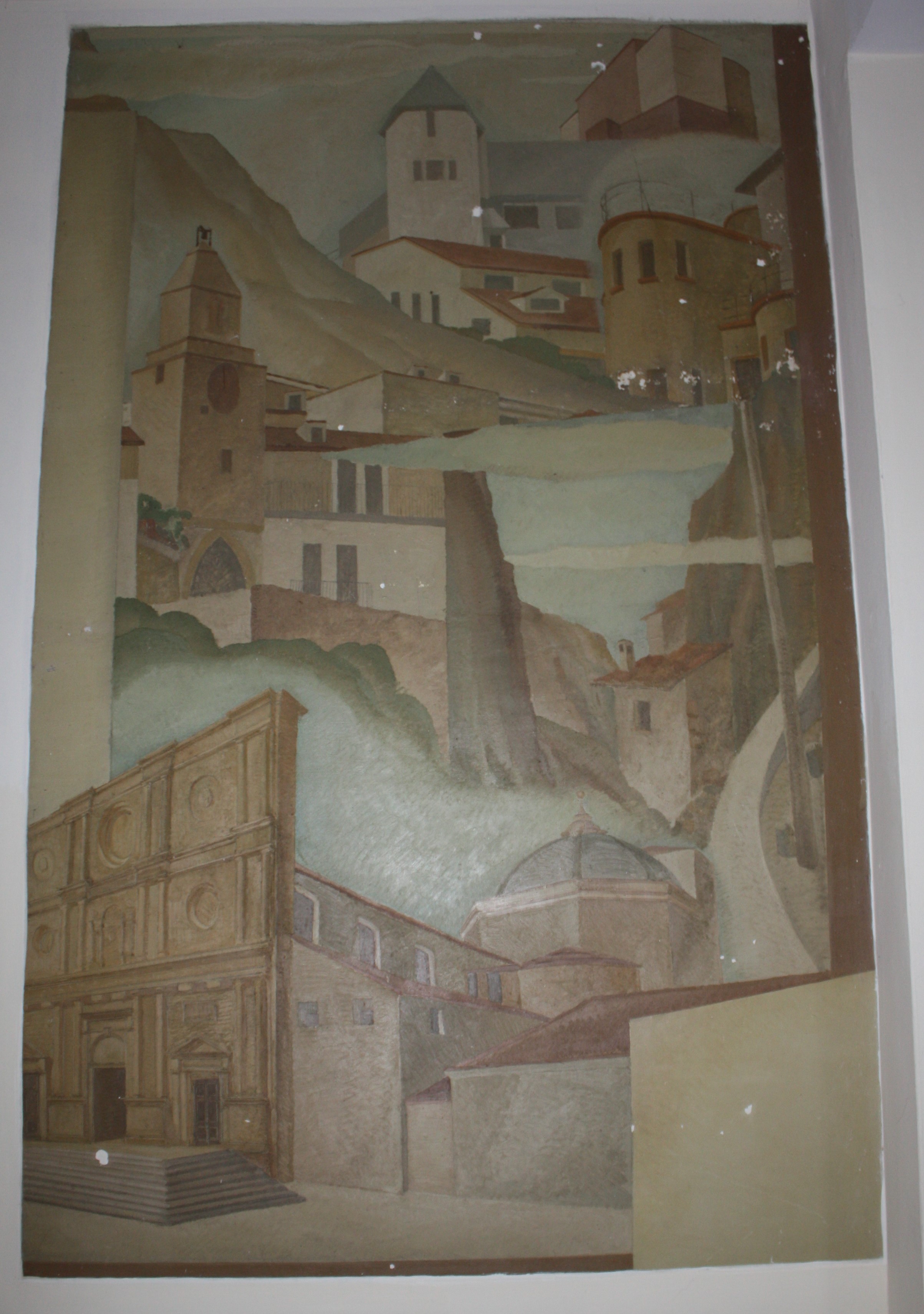 - NOTIZIE STORICO CRITICHE Il disegno della composizione assume aspetto promozionale: l’immagine mostra la raffigurazione del centro turistico del Gran Sasso, sorto negli anni trenta del Novecento, in località Fonte Cerreto. La funivia insieme al contemporaneo albergo di Campo Imperatore era celebrata come una vera e propria impresa tecnologica d’avanguardia, e largamente pubblicizzato da tutti i mezzi della propaganda degli anni trenta del Novecento. La “conquista turistica” della montagna, come definita da un articolo in Le Vie d’Italia, faceva sì che «tre ore di tempo e lire sessanta permettono di trasferirsi da piazza Colonna al Campo Imperatore, metri 2112, quali che siano le stagioni, i venti, e le nevi» come scrisse Carlo Emilio Gadda (1893-1973), inviato speciale in Abruzzo per la Gazzetta del Popolo